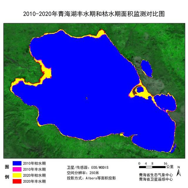 图为2010年至2020年青海湖丰水期和枯水期面积监测比照图。来历:青海省生态气候中心 青海省卫星遥感中心